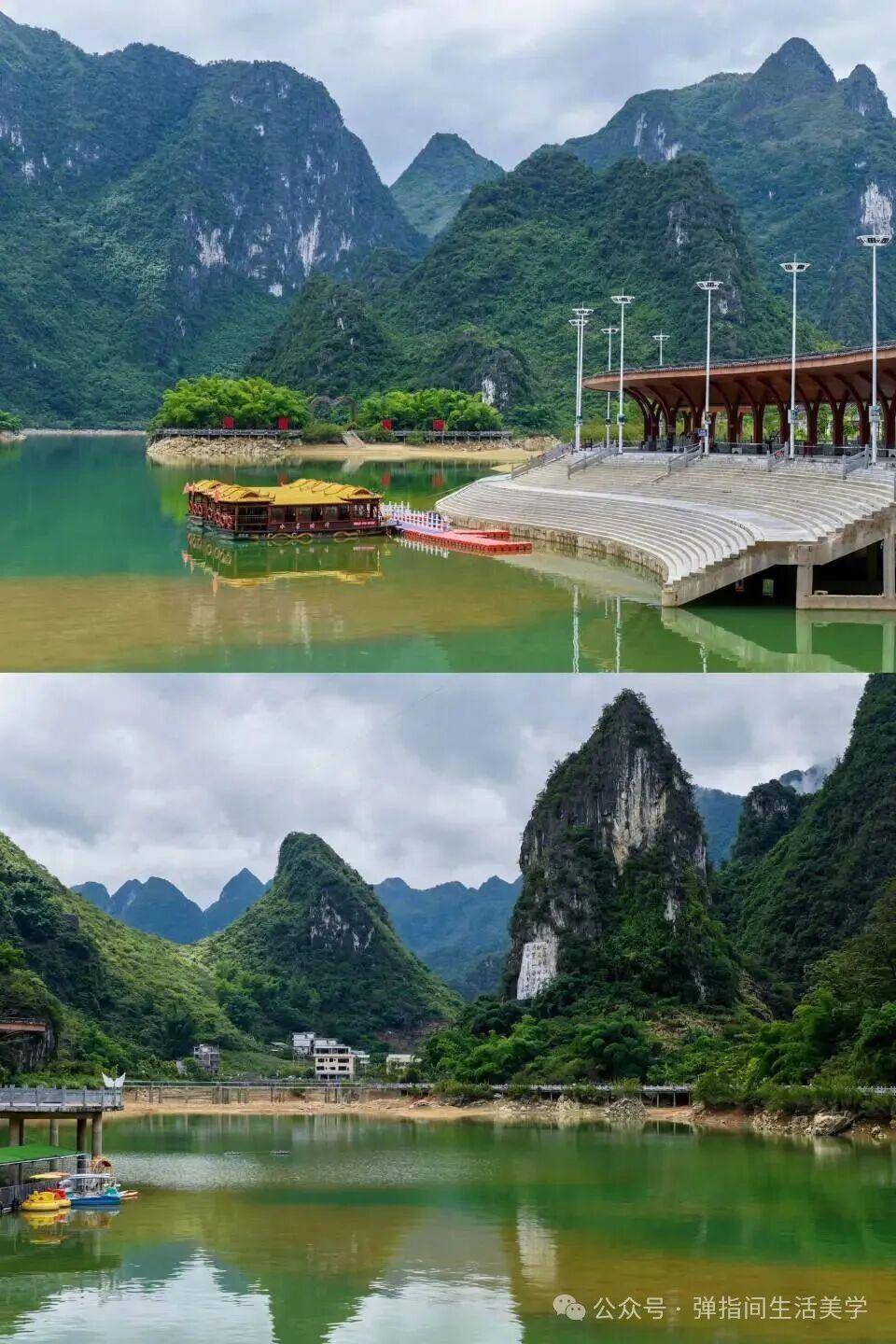从百色驱车前去凌云,当膺惩的盘猴子路将你引入谷底,豁然汜博间,浩坤湖便如一块弘大的、温润的绿翡翠撞入眼帘。湖面精深达20平素公里,湖水解析蔚蓝,反照着四周连绵调遣的喀斯特峰林。数十座山岳如同诚意的看守者,牢牢怀抱着这一湖碧水,酿成山中有湖、湖中有山的绝妙表情。不管从哪个角度望去,都是一幅无需滤镜的自然画卷,静谧而颤动。